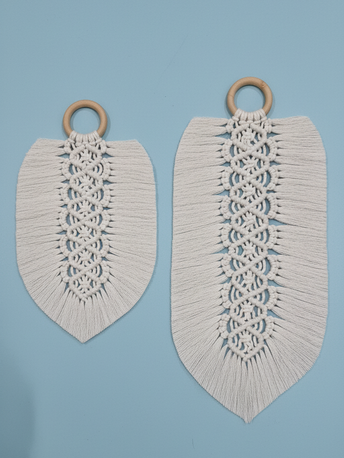 Sorgfältig handgefertigt beeindruckt dieses Makramee-Design mit filigranen Webmustern in Form einer Feder und sanft fliessenden Fransen. Schlichte Holzring runden das Gesamtbild harmonisch ab. Ein perfekter Blickfang, der jedem Raum natürlichen Charme und eine entspannte, stilvolle Atmosphäre verleiht.